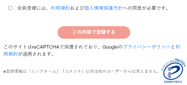 ※ニックネームとコメント以外の情報が公開されることはありません。